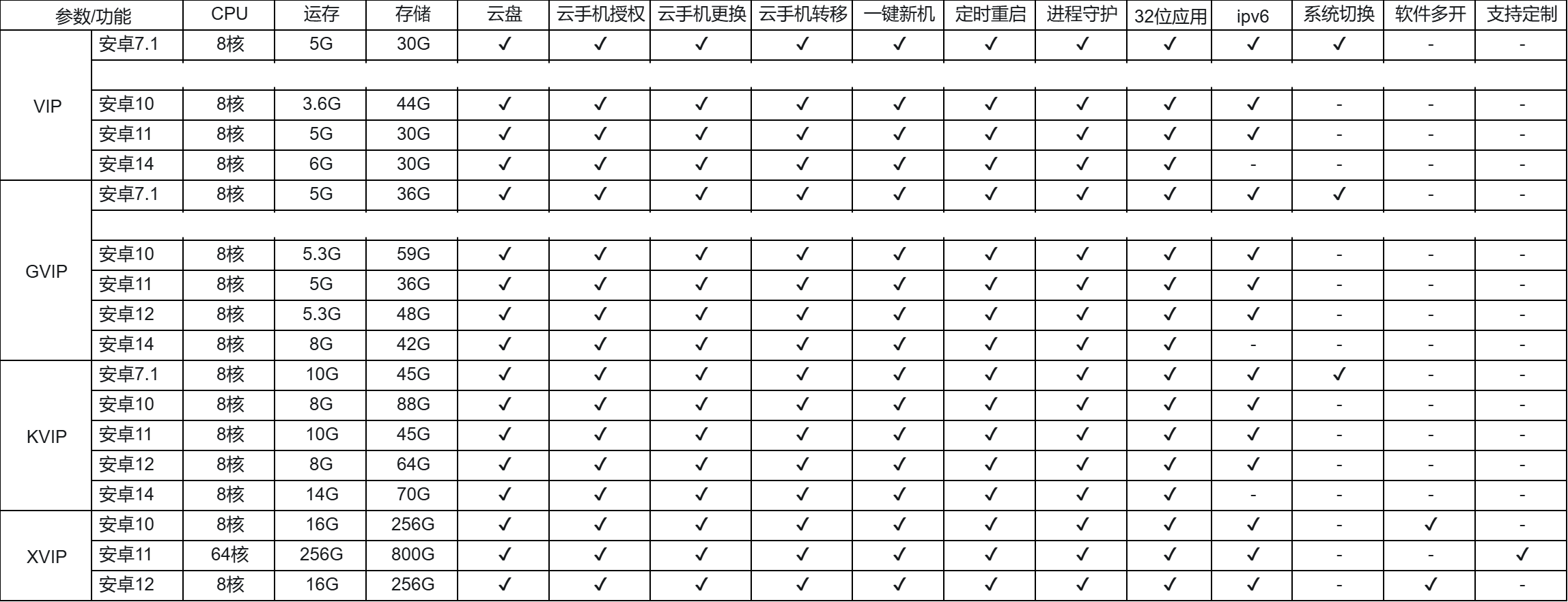 雷电云手机目前分VIP、GVIP、KVIP、XVIP四种类型,其中按系统又有细致划分(一切以app上面信息为准)
