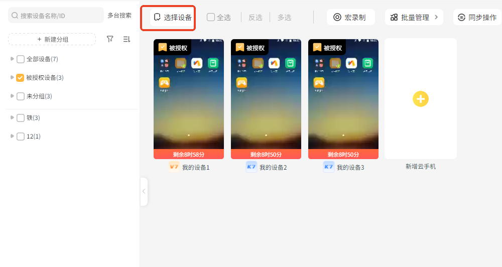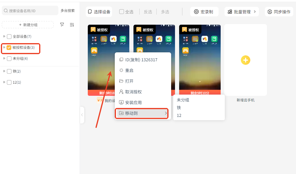找到自己被授权设备所在的分组,一般刚授权过来的云手机都是在“未分组”这个里面的,点进去就可以看到。