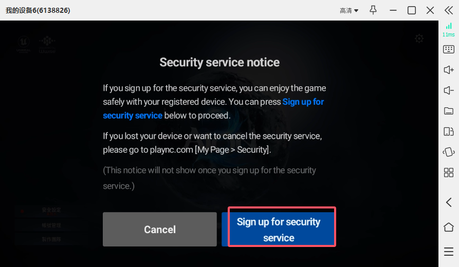 然后会有一个安全设定,要用号码验证一下,点开以后选右下角的蓝色部分(Sign up for securityservice)。